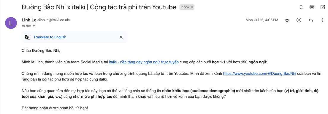 Để củng cố niềm tin, với kinh nghiệm làm short-form creator trước đó, mình biết mình cũng sẽ có cơ hội nhận được những “sự may mắn” trên hành trình làm YouTube, như: nhận sponsorship (với booking fee x5 x10 so với short-form sponsor), làm speaker ở sự kiện lớn, mentor làm YouTube,...nếu mình duy trì hành trình làm YouTube này.