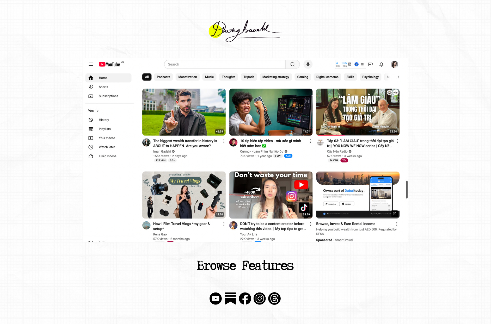 Thumbnail video là “ấn tượng đầu tiên” của khán giả khi YouTube đề xuất video của bạn ở trang chủ (browse features) hoặc ở những trang phụ (suggested videos) bên cạnh những video đang trên xu hướng.