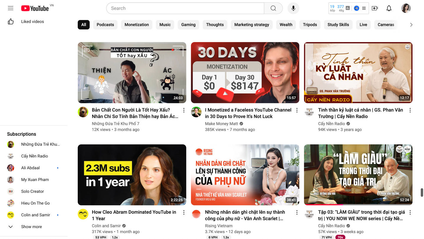 Khi lập kênh mới, mình đã đi khảo sát vòng quanh các kênh lớn (trong và ngoài nước)